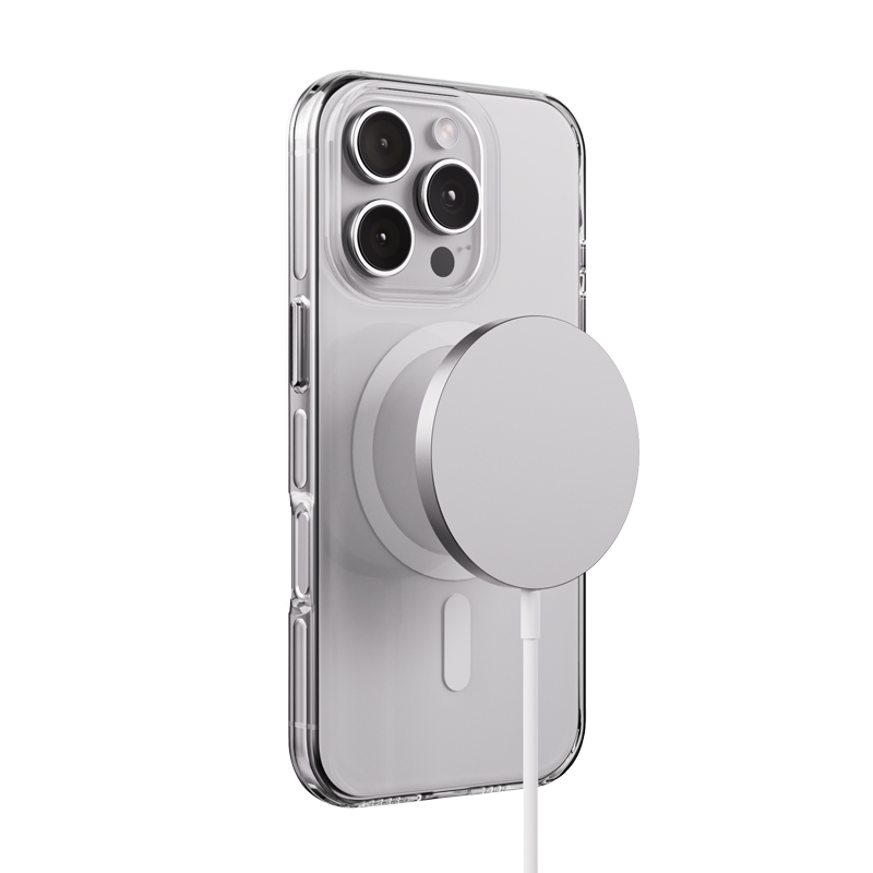 Coque Crong transparente et MagSafe pour iPhone 16 Pro Max avec 39 aimants intégrés, protection hybride, maintien magnétique fort et design ultra-clair.