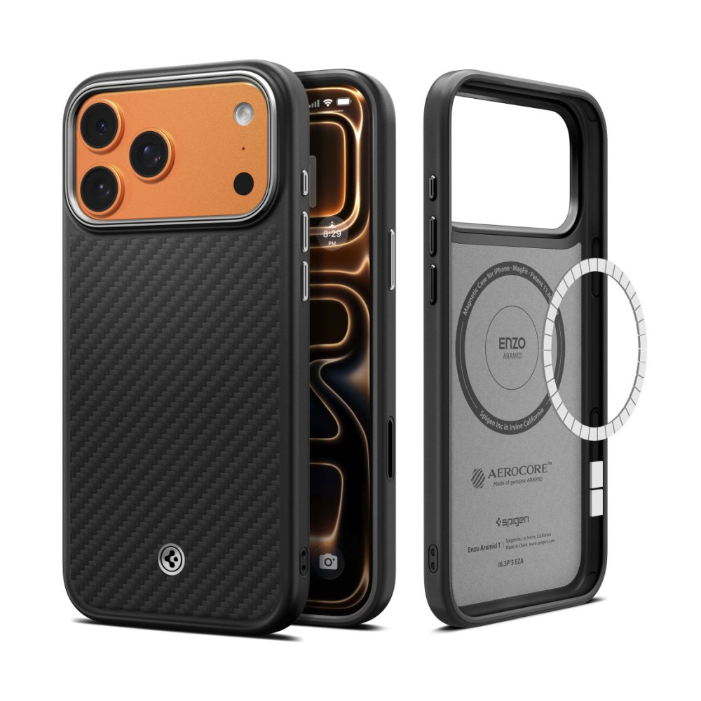 Coque Enzo Aramid ”T” Mag Magsafe pour iPhone 17 Pro Spigen Noir/Argent : caractéristiques et protection