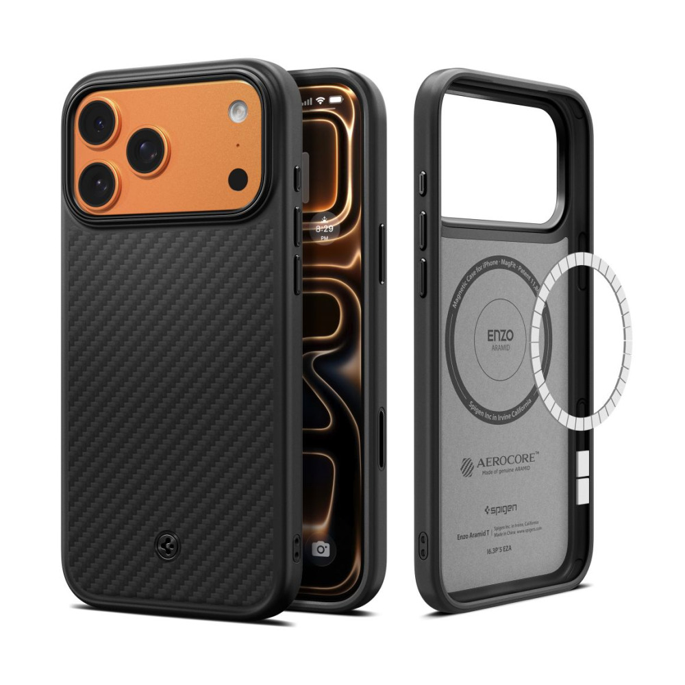 Coque Enzo Aramid ”T” Mag Magsafe pour iPhone 17 Pro Spigen Noir