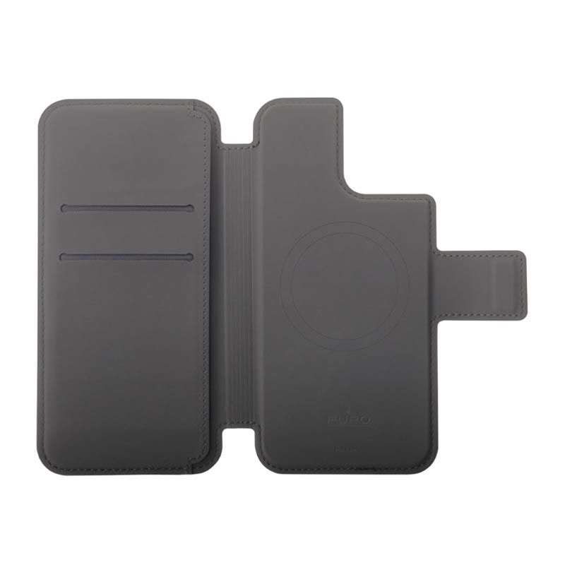 Coque iPhone 15 Plus Folio MagSafe Puro Noir – MagSafe, cuir, Puro pour iPhone 15 Plus.