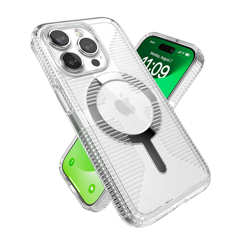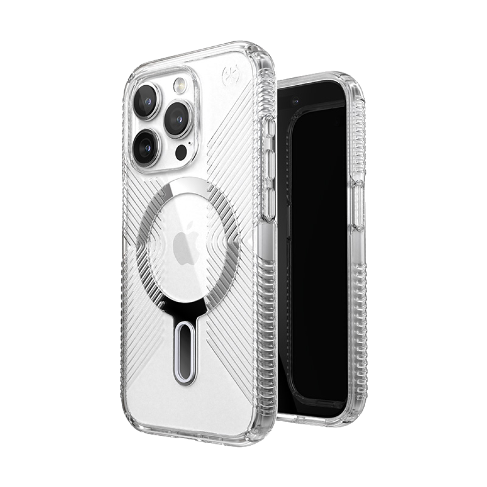 La Speck Presidio® Perfect-Clear Grip MagSafe® avec ClickLock™ Interlock est une coque transparente innovante pour votre iPhone 15 Pro. Elle est dotée d’un aimant intégré, entièrement compatible avec les accessoires Apple MagSafe®. Ses grips antidérapants novateurs, avec des encoches précises (grips inversés), offrent une adhérence améliorée, assurant une prise en main sécurisée et confortable pour la saisie ou la prise de photos.