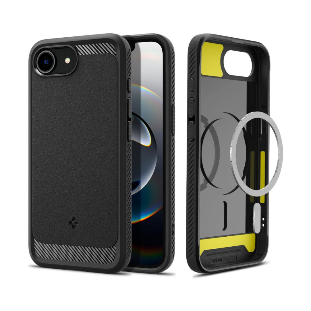 Coque iPhone 16e / 17e Rugged Armor Spigen noir mat : conception et matériaux
