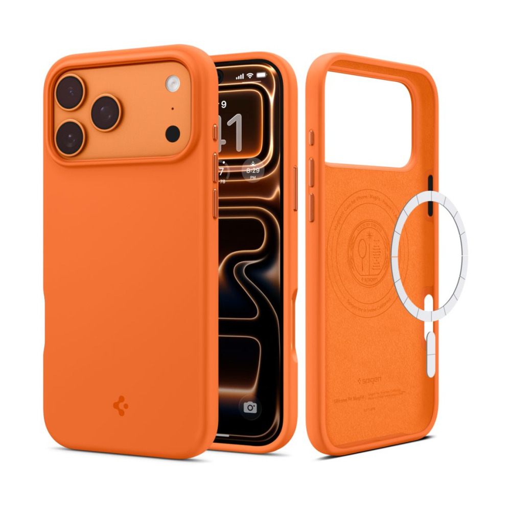 Coque iPhone 17 Pro Max Spigen orange – protection, MagSafe, Spigen.