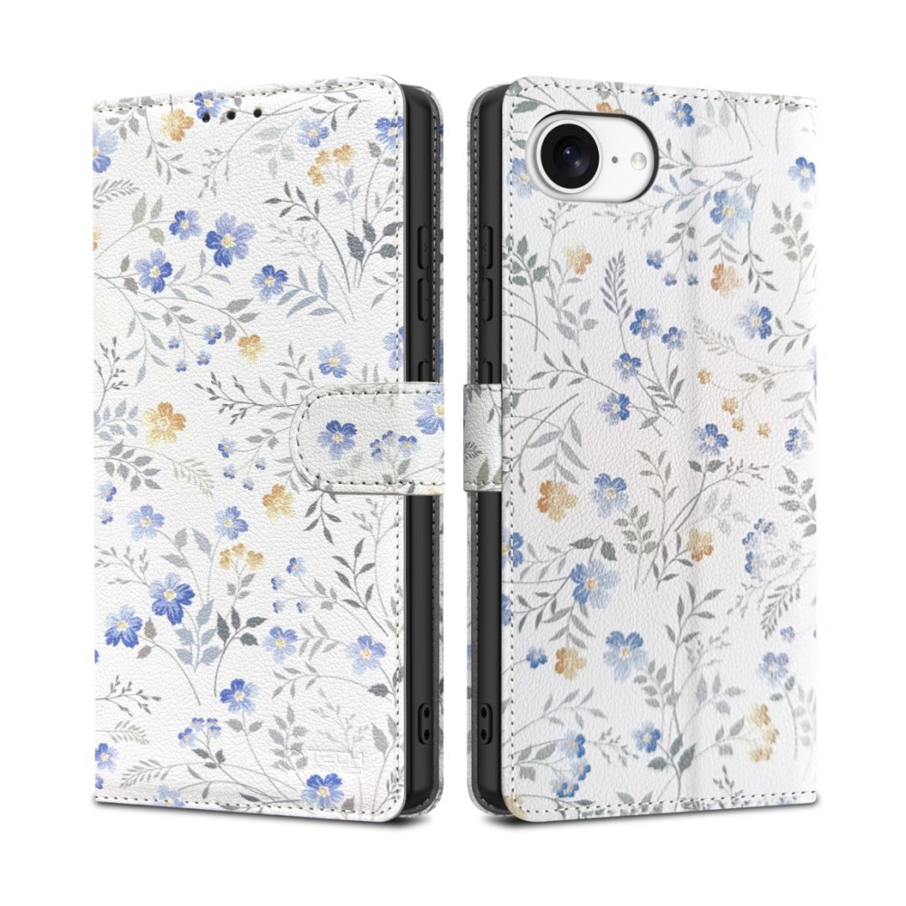 La Coque portefeuille iPhone 16e Tech-Protect WalletCase Spring Flowers est spécialement conçue pour l’iPhone 16e. Son rabat en cuir synthétique blanc arborant un délicat motif floral bleu et doré sur fond blanc offre un style printanier élégant, tout en intégrant les fonctionnalités d’un portefeuille compact.