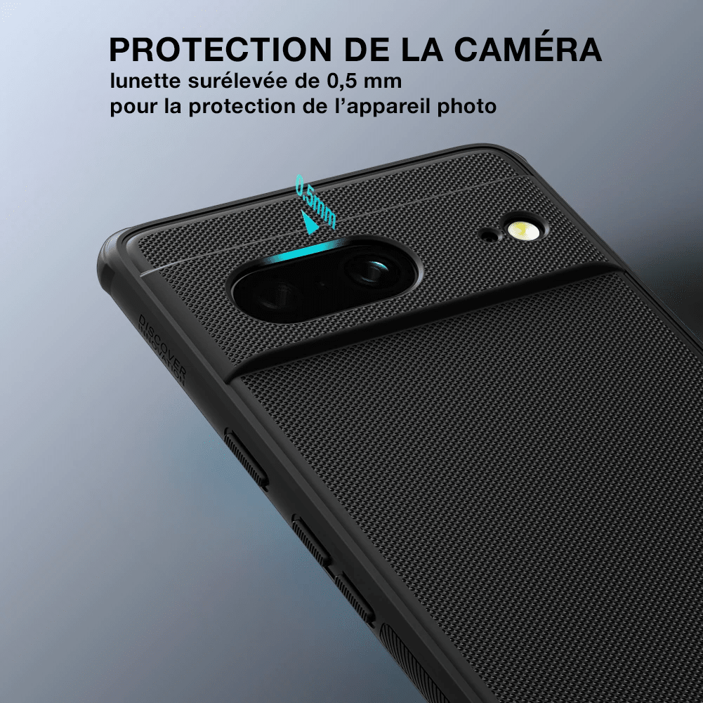 La surface bénéficie d’une finition UV mate sans poussière, offrant un toucher confortable et une apparence élégante. Résistante à l’usure, antidérapante, anti-empreintes et facile à nettoyer, elle épouse parfaitement les courbes du Google Pixel 7 sans ajouter de volume inutile.